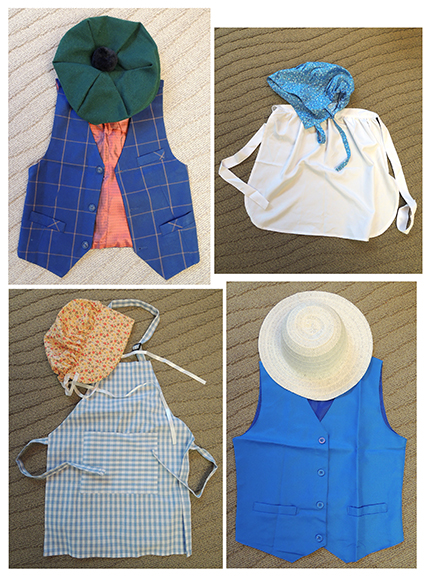 Next to the kitchen set were three baskets of dress up clothes. You can see just a few combinations below…we tried to replicate Potter’s aesthetic with aprons, bonnets, vests, straw hats, shawls, and a dashing tam o’ shanter!