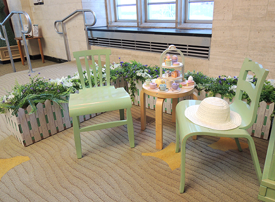 While there was plenty to learn about Beatrix Potter at the event, the main attraction was the dress up cottage and planting garden, designed with a charming Potter-esque vibe in mind. Heading over to the cottage, we had an outdoor tea garden…