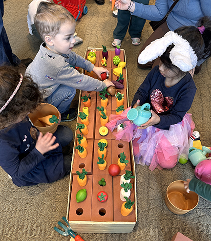 Last weekend, community families were invited to spend a day with Peter Rabbit, literature’s most enduring radish-eater. This was our first foray into Saturday programming specifically aimed at children ages 2-6, and oh my goodness was it a rousing success. We were also delighted to be joined by our friends from the West Trenton Garden Club, who you will meet a little later in this post!