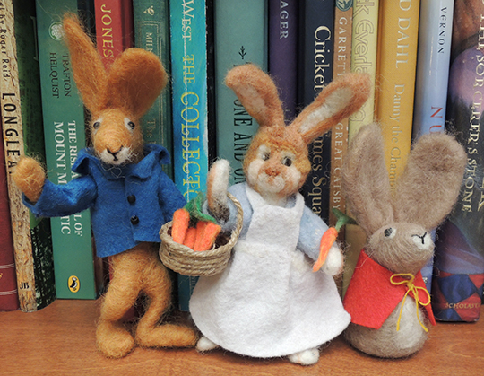 In honor of this terrific original textile, two library staff members – Wind Cowles, Associate Dean for Data, Research, and Teaching; and Sarah Reiff Conell, Research Data Management Specialist – crafted a needle felt rabbit family for visitors to enjoy!