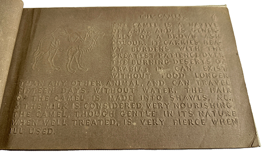 Outlines of Natural History: Quadrupeds; Embossed for the Use of the Blind by John Alston (1842). The Treasures of the Cotsen Children’s Library Collection, CTSN 19486 Eng 19, Department of Special Collections, Princeton University Library.