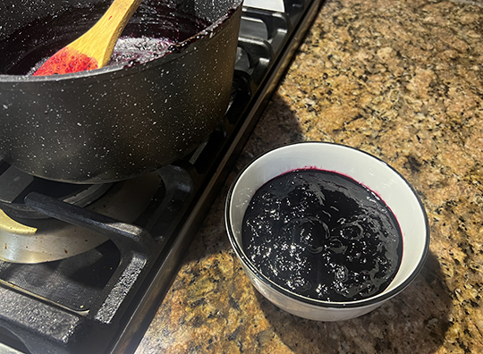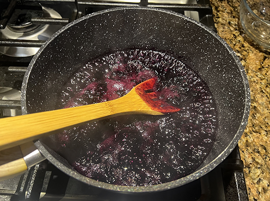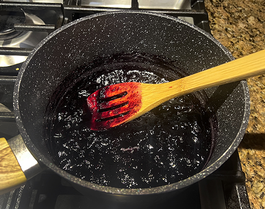 This recipe’s a simple one! Pop everything into a small saucepan over medium heat, stirring frequently. Once it comes to a boil, cook until your berries have all burst and your jam has thickened. Keep stirring so nothing burns!