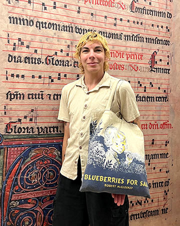 Picture this: you are Melanie, a very confused summer intern. It is 9AM and you have just arrived at the library to meet Sal, your new supervisor. You know nothing about Sal, except that they seem very cool. You are slightly terrified at the thought of meeting them. But then—you see it. The coolest tote bag ever known to man, emblazoned with the text “Blueberries for Sal,” and suddenly all is well.