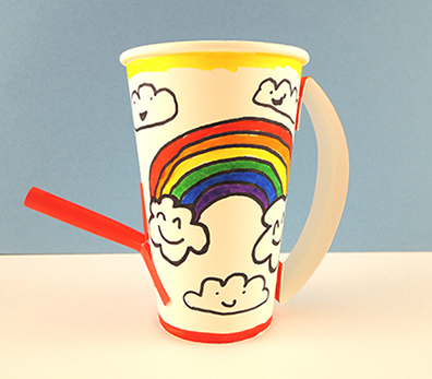 You can stop the project there, or you can also create a watering can to nourish your pet cloud. It’s basically a paper cup, poster board handle, and a bubble tea straw (if you would like more detailed instructions, you’ll find them in this post).